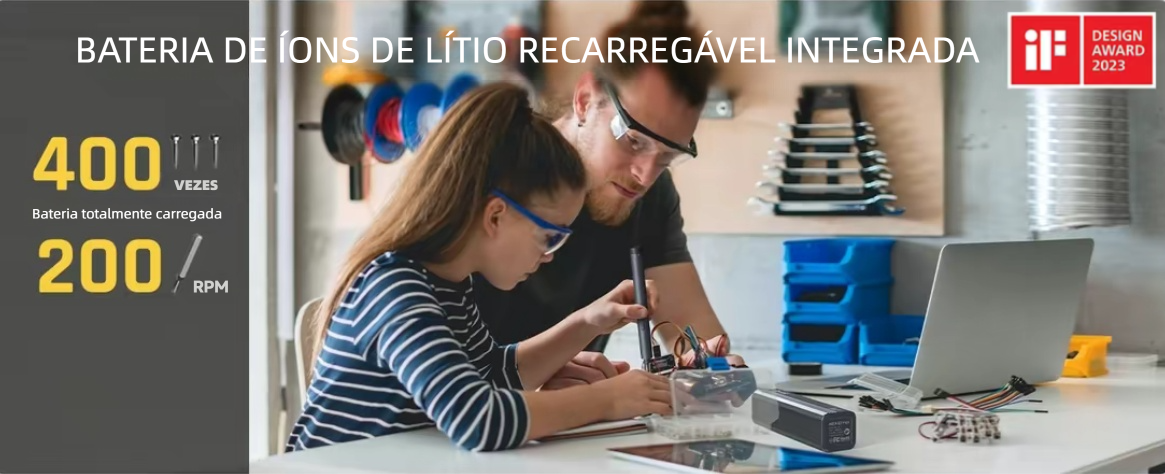 l Bateria Recarregável: Longa duração, permite apertar até 400 parafusos por carga
