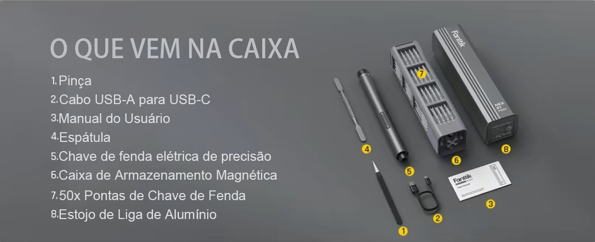 l Estojo Magnético: Mantém a chave de fenda e os bits organizados